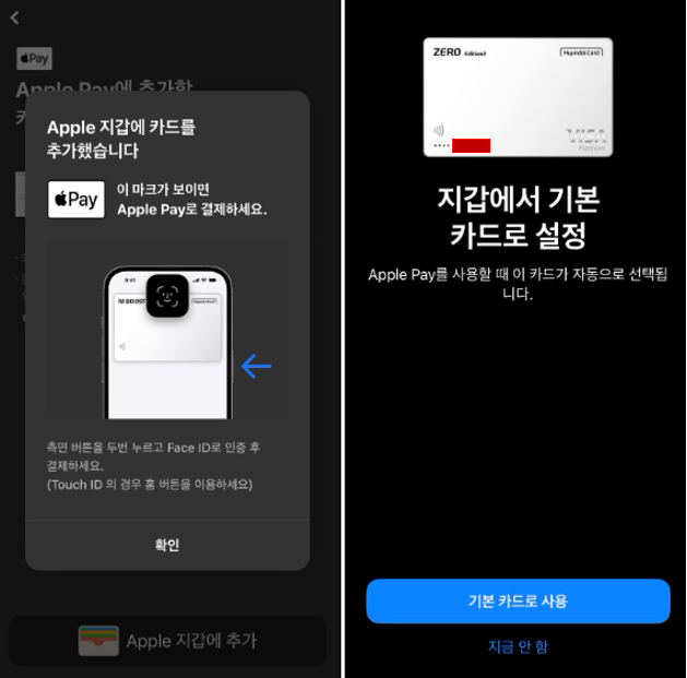 7. Apple 지갑에 카드를 추가가 완료됩니다. (당연히 기본카드로 설정해야 겠죠?)
