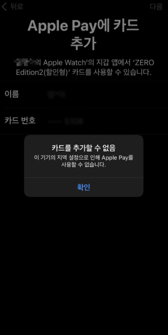 애플페이 등록 및 지역 설정 오류 팝업 해결 방법 본문