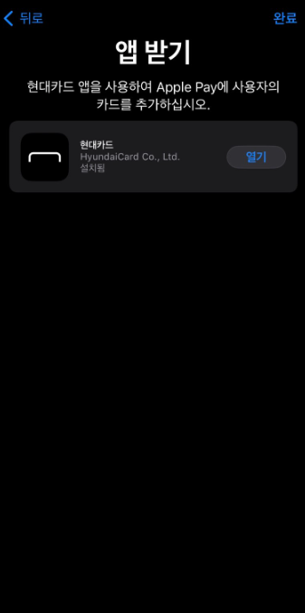 3. "앱 받기" 화면이 뜹니다. 현대카드 앱이... 혹시 없다면 앱을 받으신후 "열기"