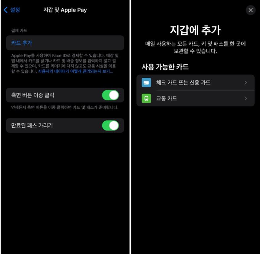 1. "설정" - "지갑 및 Apple Pay" 로 들어갑니다.