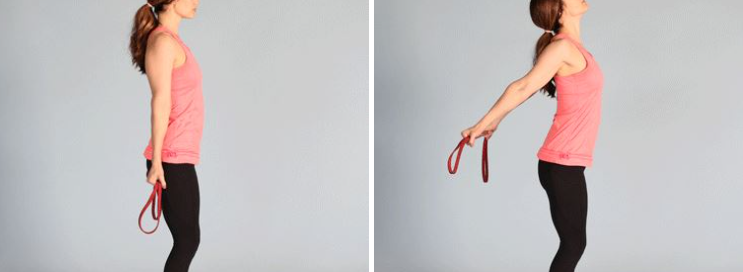 선 상태에서 집에서 쉽게 구할수 있는 줄넘기나 수건등을 활용하여 엉덩이 쪽에 걸치도록 양손으로 잡아주고