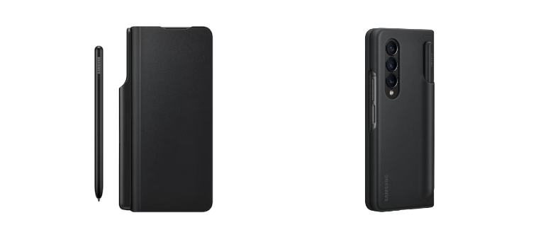 아이폰14프로의 경우, 정품가죽케이스를 갤럭시 폴드3의 경우, 카본슬림케이스를 사용하고 있는데